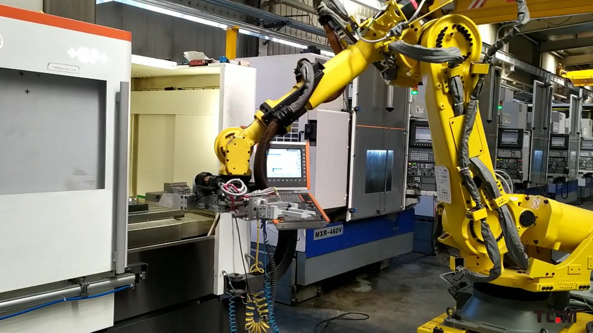 智能生產(chǎn)線,利用車間內(nèi)匹配的設(shè)備進(jìn)行智能化升級改造,加入機械臂的應(yīng)用,使線體內(nèi)機床自動運轉(zhuǎn)及調(diào)度,達(dá)到非標(biāo)件柔性自動調(diào)度生產(chǎn)的效果。